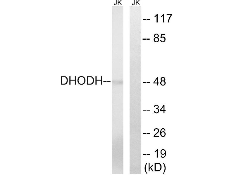 - The antiserum was produced against synthesized peptide derived from internal of human DHODH.