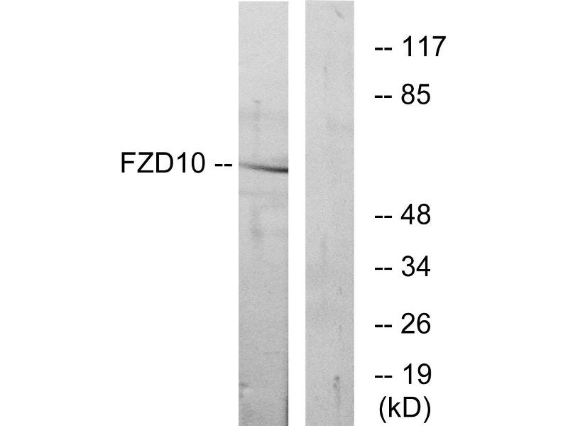 - The antiserum was produced against synthesized peptide derived from internal of human FZD10.