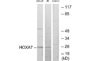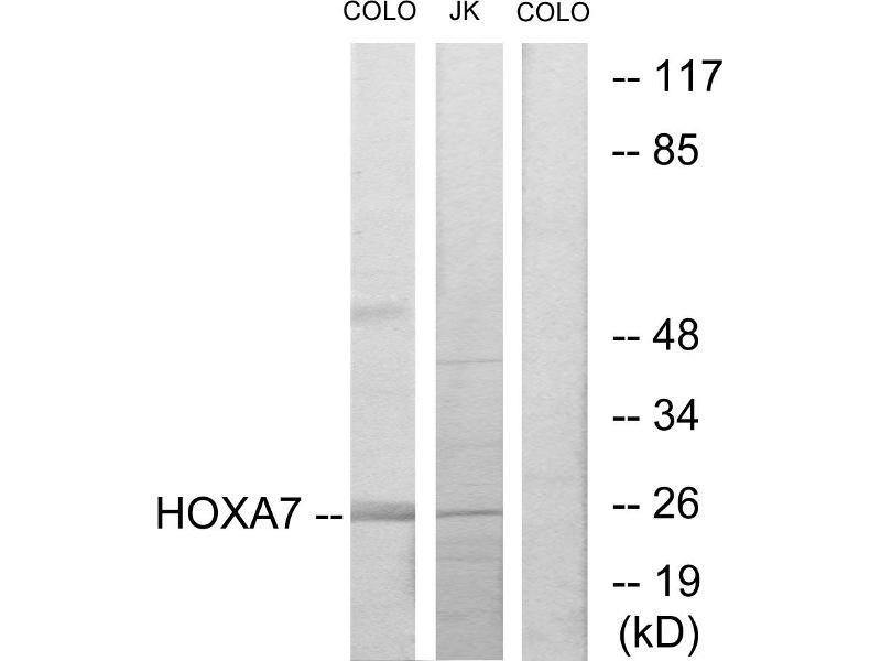 - The antiserum was produced against synthesized peptide derived from internal of human HOXA7.