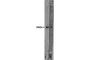- The IgY solution can be diluted to 1:500-1,000 for immunofluorescence staining and 1:1,000-5,000 for western blotting. On western blots look for a major band at 43 kDa, depending on the species.