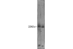 Visinin was originally isolated biochemically from chicken retina as a major protein of about 24 kDa on SDS-PAGE. Following cloning and sequencing of visinin, several visinin like proteins were discovered by homology screening. One of these, Visinin-like protein 1 is a small Calcium binding protein which is very abundant in the nervous system and is found only in neurons, though different neurons have different levels of expression. It is particularly concentrated in cerebellar Purkinje cells, and tends to be most abundant in perikarya and dendrites. The protein was discovered independently by several groups and is therefore also sometimes known as hippocalcin-like protein 3, HLP3, HPCAL3, HUVISL1, VLP-1, VILIP and VILIP-1. The protein belongs to the large superfamly of calmodulin and paravalbumin type proteins which function by binding Calcium ions. Calcium binding alters the confomation of these proteins and allow them to interact with other binding partners, the properties of which they may alter. Visinin-like protein 1 has four EF hand domains, which are negatively charged helix-turn-helix peptides which are responsible for Calcium binding. Visinin-like protein 1 is 191 amino acids in size and has a molecular weight on SDS-PAGE of 22 kDa. The protein has recently been suggested to be a useful biomarker of Alzheimer's disease and traumatic brain injury. The HGNC name for this protein is VSNL1.