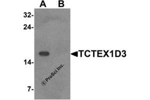- TCTEX1D3 antibody was raised against a 19 amino acid synthetic peptide near the amino terminus of human TCTEX1D3.