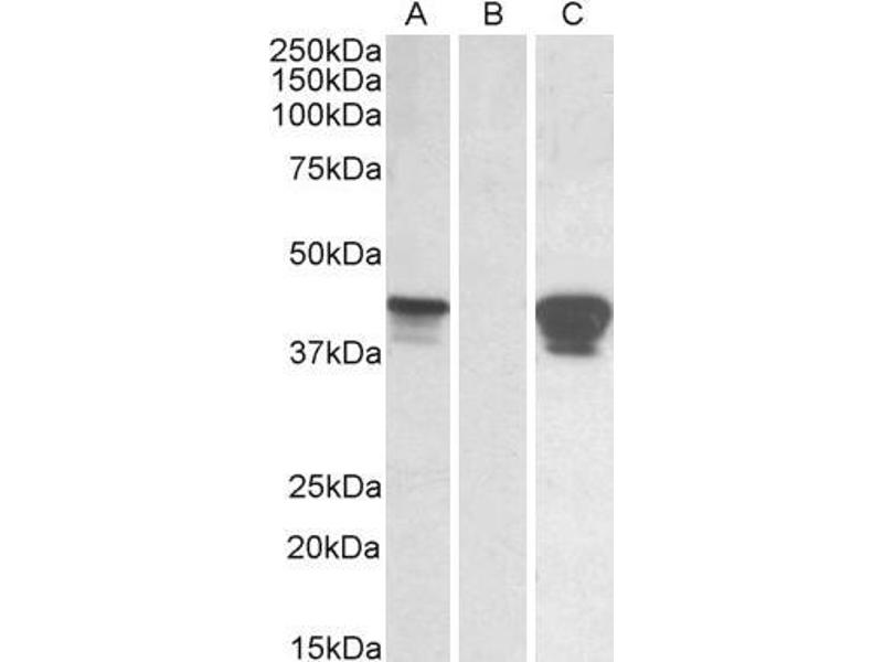Western Blot: In transfected HEK293 transiently expressing Human SLAMF8 a band of approx. 45 kDa is observed. This band is not observed in the non-transfected HEK293. The calculated molecular size is 31.7 kDa according to NP_064510.1. Recommended concentra