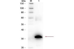 Application Note: Anti-Carbonic Anhydrase II Biotin Antibody has been tested by ELISA and western blot and is assayed against 1.0 μg of Carbonic Anhydrase II in a standard capture ELISA using Peroxidase Conjugated Streptavidin #S000-03 and ABTS (2,2'-azino-bis-[3-ethylbenthiazoline-6-sulfonic acid]) code # ABTS-100 as a substrate for 30 minutes at room temperature. A working dilution of 1:4,000 to 1:20,000 of the reconstitution concentration is suggested for this product.