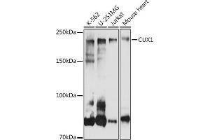 The protein encoded by this gene is a member of the homeodomain family of DNA binding proteins. It may regulate gene expression, morphogenesis, and differentiation and it may also play a role in the cell cycle progession. Several alternatively spliced transcript variants encoding different isoforms have been identified.,CUX1,CASP,CDP,CDP/Cut,CDP1,COY1,CUTL1,CUX,Clox,Cux/CDP,GOLIM6,Nbla10317,p100,p110,p200,p75,Epigenetics & Nuclear Signaling,Transcription Factors,CUX1