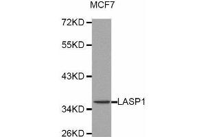 - This gene encodes a member of a subfamily of LIM proteins, characterized by a LIM motif and a domain of Src homology region 3, and also a member of the nebulin family of actin-binding proteins. The encoded protein is a cAMP and cGMP dependent signaling protein and binds to the actin cytoskeleton at extensions of the cell membrane. The encoded protein has been linked to metastatic breast cancer, hematopoetic tumors such as B-cell lymphomas, and colorectal cancer.,LASP1,Lasp-1,MLN50,Signal Transduction,Cell Biology & Developmental Biology,Cytoskeleton,Microfilaments,LASP1