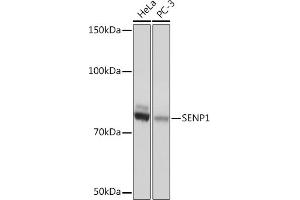 This gene encodes a cysteine protease that specifically targets members of the small ubiquitin-like modifier (SUMO) protein family. This protease regulates SUMO pathways by deconjugating sumoylated proteins. This protease also functions to process the precursor SUMO proteins into their mature form. Alternate splicing results in multiple transcript variants. [provided by RefSeq, Jun 2012],SuPr-2,Cell Biology & Developmental Biology,Epigenetics & Nuclear Signaling,Ubiquitin,SENP1