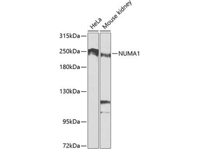 This gene encodes a large protein that forms a structural component of the nuclear matrix. The encoded protein interacts with microtubules and plays a role in the formation and organization of the mitotic spindle during cell division. Chromosomal translocation of this gene with the RARA (retinoic acid receptor, alpha) gene on chromosome 17 have been detected in patients with acute promyelocytic leukemia. Alternative splicing results in multiple transcript variants.,NUMA1,NMP-22,NUMA,Cell Biology & Developmental Biology,Cell Cycle,NUMA1