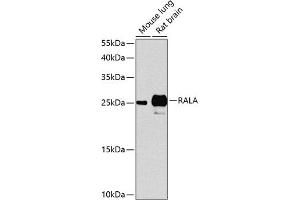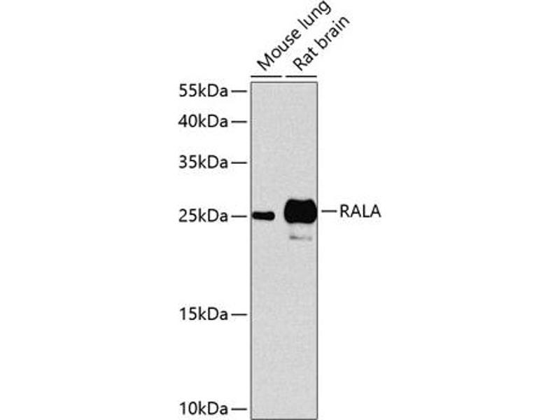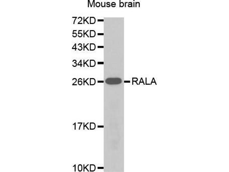 The product of this gene belongs to the small GTPase superfamily, Ras family of proteins. GTP-binding proteins mediate the transmembrane signaling initiated by the occupancy of certain cell surface receptors. This gene encodes a low molecular mass ras-like GTP-binding protein that shares about 50 % similarity with other ras proteins.,RALA,RAL,Epigenetics & Nuclear Signaling,Cancer,Signal Transduction,G protein signaling,Signal Transduction,Cell Biology & Developmental Biology,Cell Adhesion,RALA