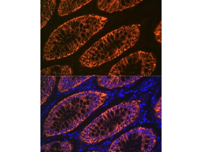 - The glycoprotein encoded by this gene is a cell surface antigen that is expressed in greater than 95 % of human colon cancers. The open reading frame encodes a 319-amino acid polypeptide having a putative secretory signal sequence and 3 potential glycosylation sites. The predicted mature protein has a 213-amino acid extracellular region, a single transmembrane domain, and a 62-amino acid intracellular tail. The sequence of the extracellular region contains 2 domains characteristic of the CD2 subgroup of the immunoglobulin (Ig) superfamily. [provided by RefSeq, Jul 2008],A33,Cancer,Immunology & Inflammation,Tumor biomarkers,Tumor immunology,Tumor immunology_Tumor-associated antigens,GPA33