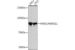 MAD1L1 is a component of the mitotic spindle-assembly checkpoint that prevents the onset of anaphase until all chromosome are properly aligned at the metaphase plate. MAD1L1 functions as a homodimer and interacts with MAD2L1. MAD1L1 may play a role in cell cycle control and tumor suppression. Alternative splicing results in multiple transcript variants. [provided by RefSeq, Jan 2015],MAD1, PIG9, TP53I9, TXBP181,Cell Biology & Developmental Biology,Cell Cycle,Cell Cycle_Centromere,MAD1L1