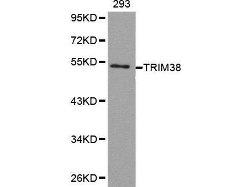 - Recombinant fusion protein containing a sequence corresponding to amino acids 266-465 of human TRIM38 (NP_006346.1).