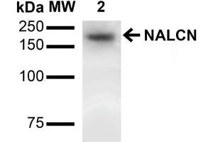1 μg/ml of ABIN1686626 was sufficient for detection of NALCN in 20 μg of rat brain lysate by colorimetric immunoblot analysis using Goat anti-mouse IgG:HRP as the secondary antibody.