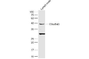 Background: C9orf140 (chromosome 9 open reading frame 140), also known as TS/MDEP (tumor specificity and mitosis phase-dependent expression protein) or p42.3, is a 394 amino acid nuclear and cytoplasmic protein encoded by a gene that maps to human chromosome 9q34.3. Chromosome 9 consists of about 145 million bases, represents 4 % of the human genome and encodes nearly 900 genes. Thought to play a role in gender determination, deletion of the distal portion of 9p can lead to development of male to female sex reversal, the phenotype of a female with a male X,Y genotype. Hereditary hemorrhagic telangiectasia, which is characterized by harmful vascular defects, is associated with the chromosome 9 gene encoding endoglin protein, ENG. Familial dysautonomia is also associated with chromosome 9 though through the gene IKBKAP. Notably, chromosome 9 encompasses the largest interferon family gene cluster. Chromosome 9 is partnered with chromosome 22 in the translocation leading to the aberrant production of BCR-ABL fusion protein often found in leukemias.