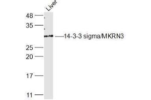Synonyms: 14 3 3 protein sigma, 14-3-3 protein sigma, 1433S_HUMAN, Epithelial cell marker protein 1, Er, HME 1, HME1, MGC143283, Mkrn3, Mme1, OTTHUMP00000004242, RP23 137L22.11, SFN, SFN protein, Stratin, YWHAS.