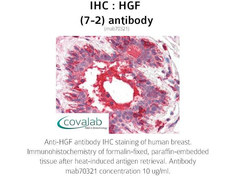 - Reacts with human HGF and to a lesser extent, mouse by Western Blot