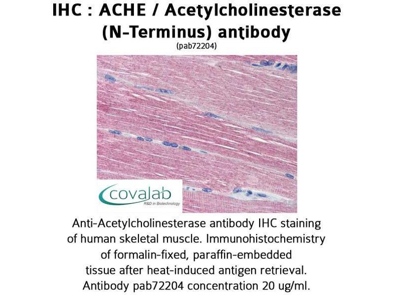 - Reacts with the N-terminus part of human ACHE (N-terminal extended acetylcholinesterase)