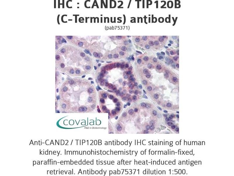 - Reacts with the C-terminus part of human CAND2 / TIP120B