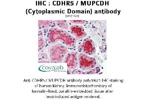 - Reacts with human CDHR5 / MUPCDH