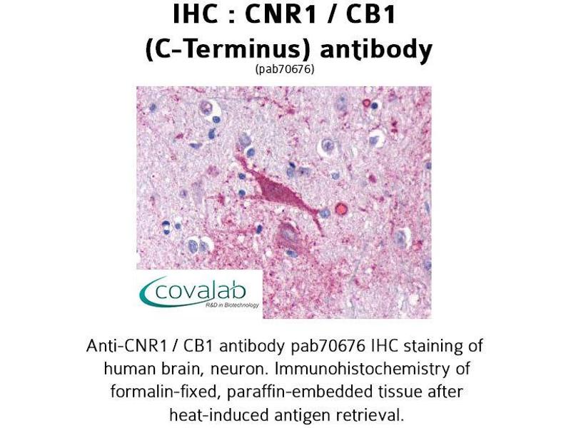 - Synthetic 16 amino acid peptide from C-terminus of human CNR1 / CB1. Percent identity with other species by BLAST analysis: Human, Chimpanzee, Gorilla, Monkey, Marmoset, Mouse, Rat, Panda, Dog, Bat, Bovine, Cat, Horse, Pig (100%), Opossum (94%), Turkey, Zebra finch, Chicken, Xenopus (88%).