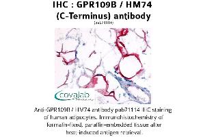 - Reacts with human GPR109B / HM74. BLAST analysis of the peptide immunogen showed no homology with other human proteins.