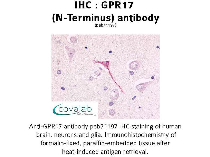 - Synthetic 15 amino acid peptide from N-terminal extracellular domain of human GPR17. Percent identity with other species by BLAST analysis: Human (100%), Gibbon (93%), Monkey (93%), Gorilla (87%).