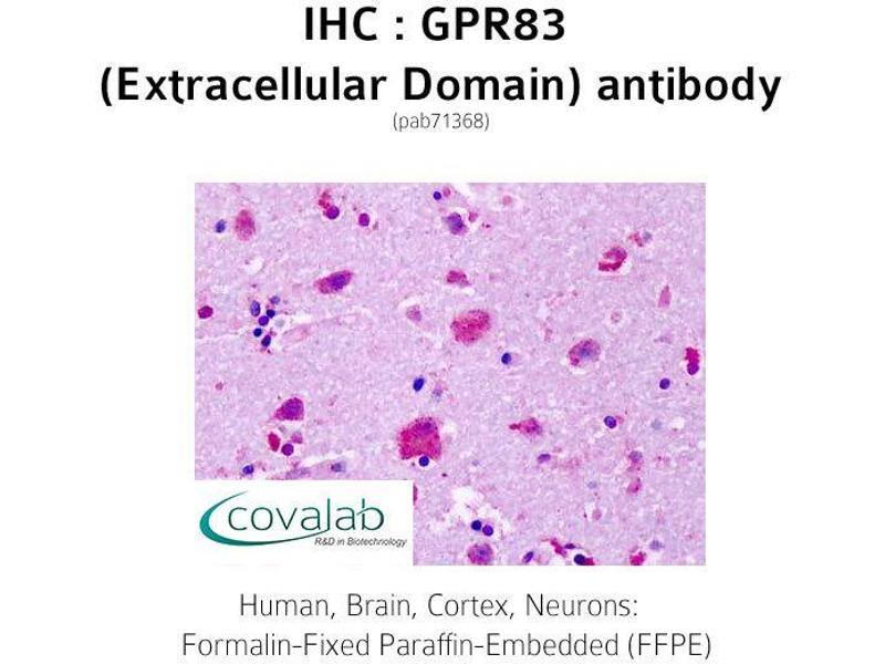 - Synthetic 13 amino acid peptide from 3rd extracellular domain of human GPR83. Percent identity with other species by BLAST analysis: Human (100%), Gibbon (100%), Monkey (100%), Marmoset (100%), Bovine (100%), Horse (100%), Rabbit (100%), Pig (100%)