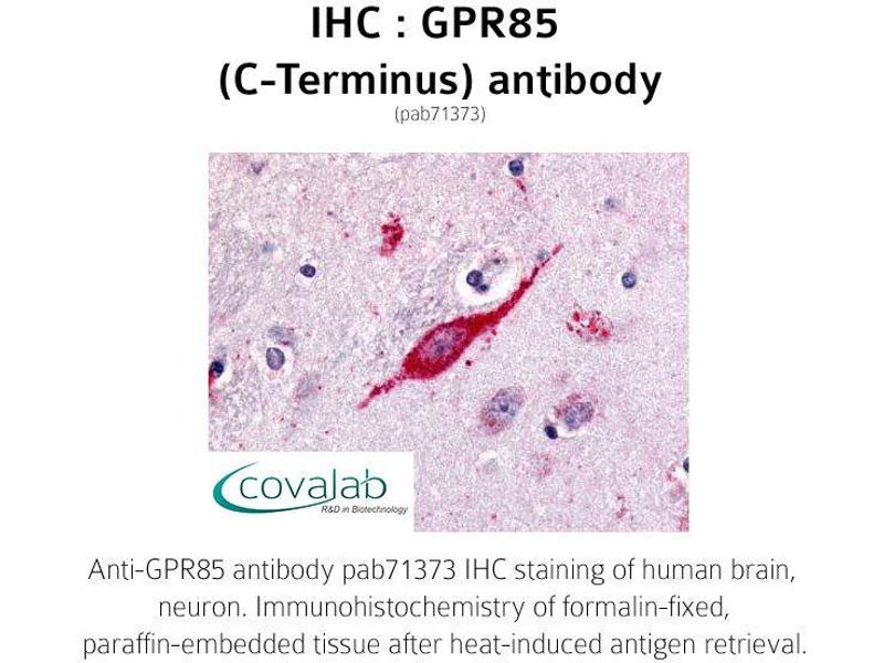- Synthetic 20 amino acid peptide from C-terminus of human GPR85. Percent identity with other species by BLAST analysis: Human (100%), Gorilla (100%), Orangutan (100%), Gibbon (100%), Monkey (100%), Marmoset (100%), Mouse (100%), Rat (100%), Hamster (100%)
