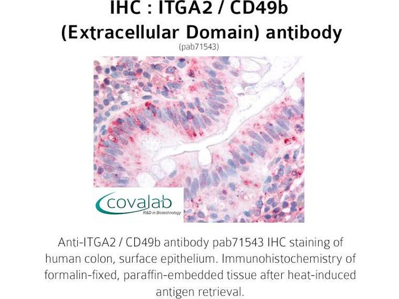 - Reacts with human ITGA2 / CD49b