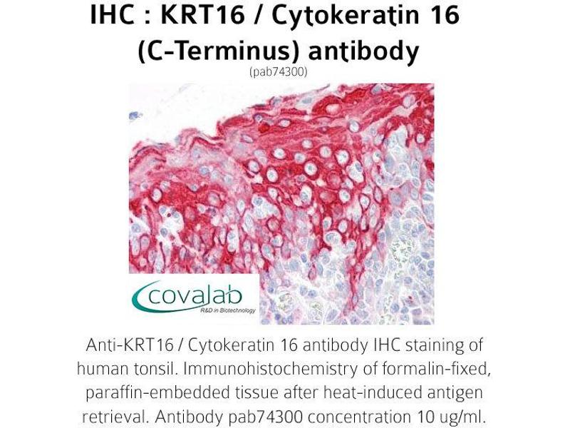- Reacts with the C-terminus part of human KRT16 / Cytokeratin 16