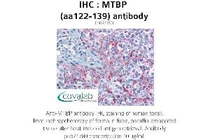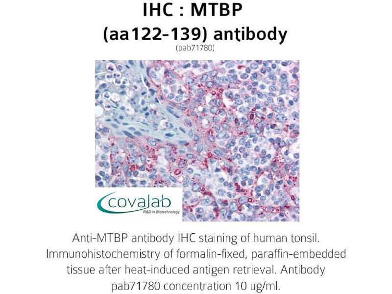 - Reacts with human MTBP, which differ from the mouse sequence by three amino acids