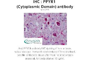 - Reacts with the cytoplasmic domain of human PPYR1