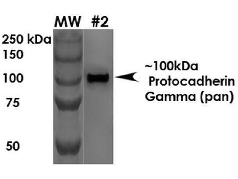- Detects ~100 kDa. Cross-reacts with all Gamma-protocadherin-A, -B and -C proteins.