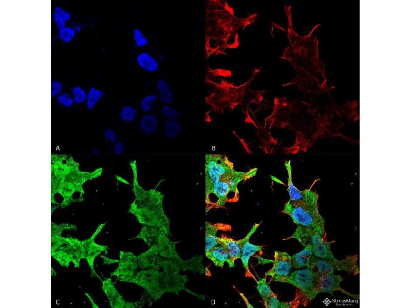 - Detects ~36-38 kDa.