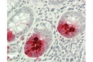 - Permeabilization and Staining Procedure - In combination with our Permeabilization Kit FIX&PERM® (ABIN1741575) intracellular Lysozyme can be easily stained in cell suspensions. - For each sample to be analyzed add 50 µL of whole blood, bone marrow or mononuclear cell suspension in a 5 mL tube - Add 100 µL of Reagent A (Fixation Medium, stored and used at room temperature) - Incubate for 15 minutes at room temperature - Add 5 mL phosphate buffered saline and centrifuge cells for 5 minutes at 300 g - Remove supernatant and add to cell pellet 100 µL Reagent B (Permeabilization Medium) and 20 µL of the LZ-2 monoclonal antibody conjugate - Vortex at low speed for 1-2 seconds - Incubate for 15 minutes at room temperature - Wash cells with phosphate buffered saline as described above - Remove supernatant and resuspend cells in sheath fluid for immediate analysis or resuspend cells in 0.5 mL 1.0 % formaldehyde and store them at 2- 8°C in the dark. Analyze fixed cells within 24 hours.