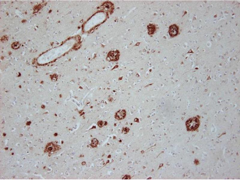 WB: Detects purified Abeta 42. Complex samples like brain extracts still have to be tested. Nitrocellulose membrane is recommended for blotting.