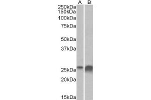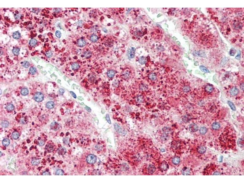 Western Blot: Approx 26 kDa band observed in Human Liver and Kidney lysates (calculated MW of 21.3 kDa according to NP_001638.1). The observed molecular weight corresponds to the glycosylated form. Recommended concentration: 0.3-1 μg/mL. Primary incubation