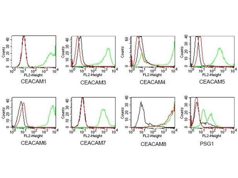 - CEACAM8 belongs to the carcinoembryonic antigen (CEA) gene family. CEACAM8 is expressed in neutrophils and eosinophils and is characterized as a granulocyte-specific activation antigen. GM-2H6 was generated by genetic immunization and can be used to distinguish CEACAM8 from all other CEACAMs.