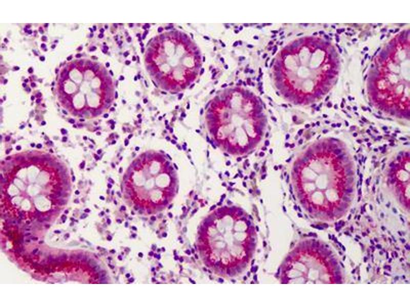 Usage: Immunohistochemistry: This antibody was validated for use in immunohistochemistry on a panel of 21 formalin-fixed, paraffin-embedded (FFPE) human tissues after heat induced antigen retrieval in pH 6.0 citrate buffer. After incubation with the primary antibody, slides were incubated with biotinylated secondary antibody, followed by alkaline phosphatase-streptavidin and chromogen. The stained slides were evaluated by a pathologist to confirm staining specificity. The optimal working concentration for this antibody was determined to be 5 μg/mL. -
