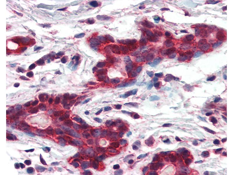 Usage: Immunohistochemistry: This antibody was validated for use in immunohistochemistry on a panel of 21 formalin-fixed, paraffin-embedded (FFPE) human tissues after heat induced antigen retrieval in pH 6.0 citrate buffer. After incubation with the primary antibody, slides were incubated with biotinylated secondary antibody, followed by alkaline phosphatase-streptavidin and chromogen. The stained slides were evaluated by a pathologist to confirm staining specificity. The optimal working concentration for this antibody was determined to be 10 μg/mL. -