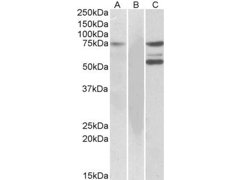 Western Blot: Approx 75 kDa band observed in nuclear ysates of cell line Jurkat (calculated MW of 71.8 kDa according to NP_005537.3). Recommended concentration: 1-3g/mL. Primary incubation 1 hour at room temperature.
