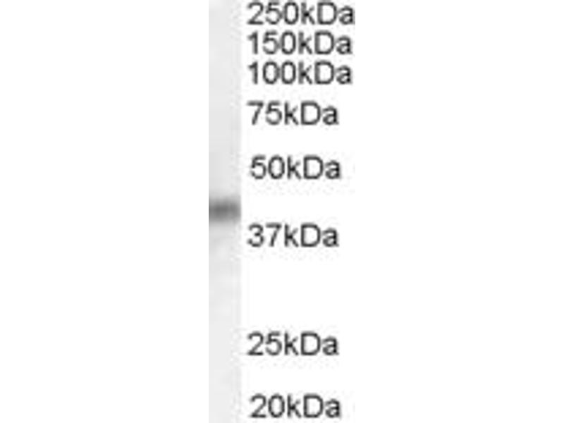 Western Blot: Approx 40 kDa band observed in lysates of HeLa (calculated MW of 39.3 kDa according to NP_004408.1). Recommended concentration: 1-3 μg/mL. Primary incubation was 1 hour. Preliminary testing was unsuccessful on Rat Lung for this particular batc