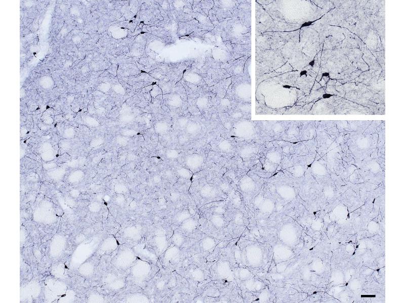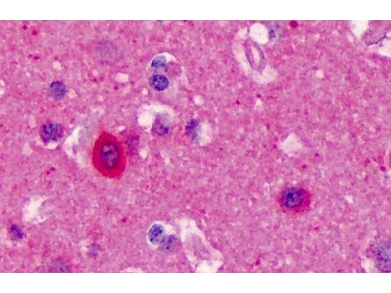 Immunohistochemistry: Paraffin embedded Human Cortex. Recommended concentration: 6-8 μg/mL.