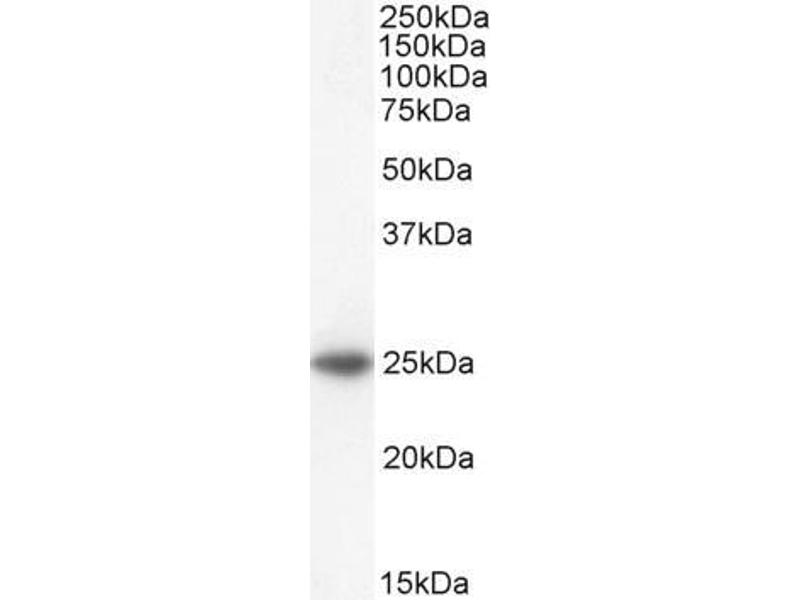 Western Blot: Approx 25 kDa band observed in Human Adrenal Gland lysates and in preliminary testing of HeLa and Jurkat cell lyate (calculated MW of 23.4 kDa according to NP_001179.1. Recommended concentration: 0.5-1 μg/mL. Primary incubation 1 hour at room
