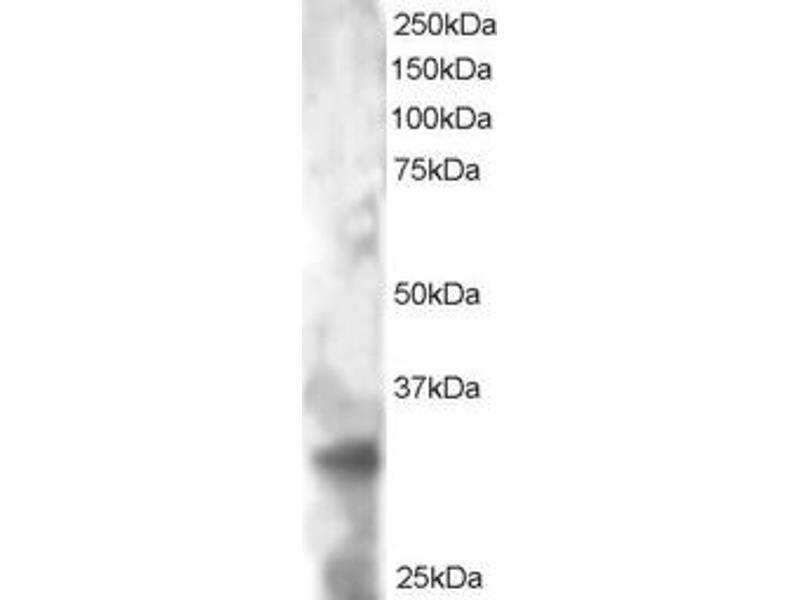 Western Blot: Approx 33-35 kDa band seen in HeLa lysate. Recommended for use at 1-3 μg/mL.