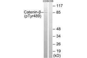 - The antiserum was produced against synthesized phosphopeptide derived from human Catenin beta around the phosphorylation site of tyrosine 489 (L-H-YP-G-L).