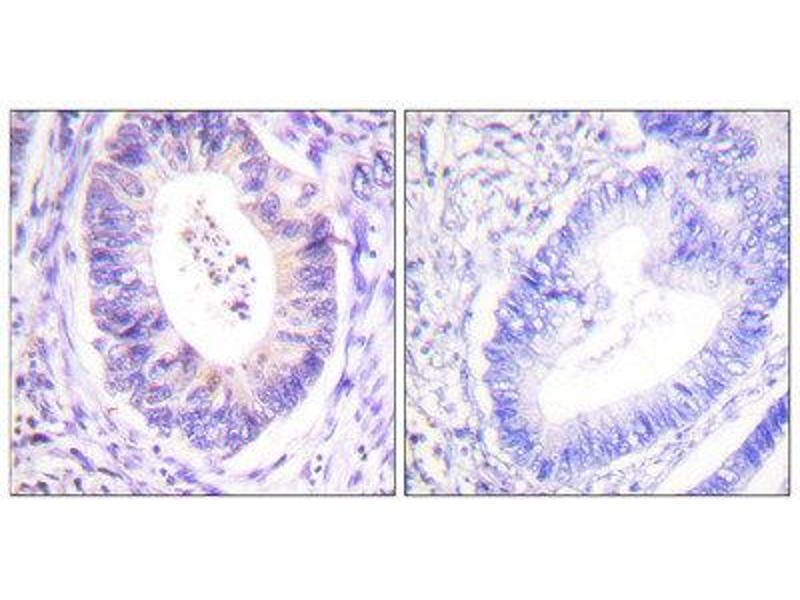 The antiserum was produced against synthesized non-phosphopeptide derived from human p90 RSK around the phosphorylation site of threonine 573 (L-M-TP-P-C).