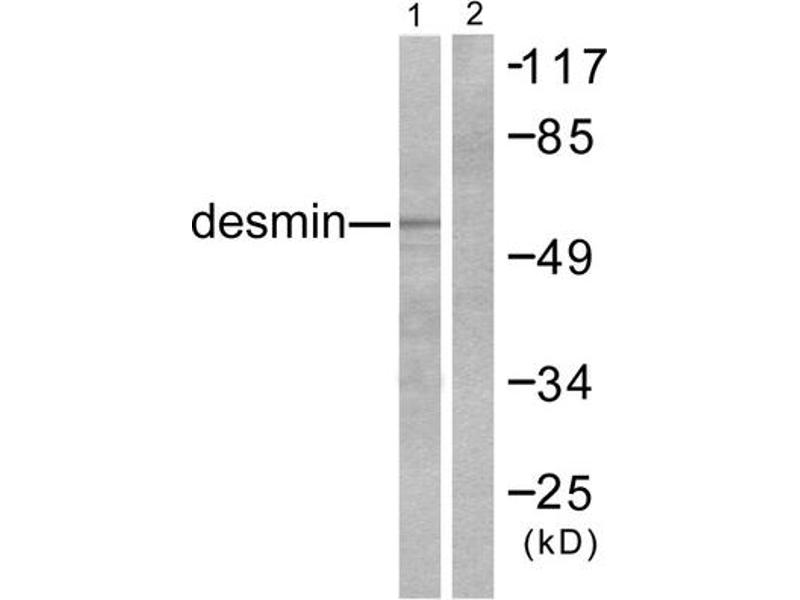 - The antiserum was produced against synthesized peptide derived from C-terminal of human Desmin.