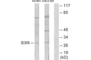 - The antiserum was produced against synthesized peptide derived from internal of human SIX6.