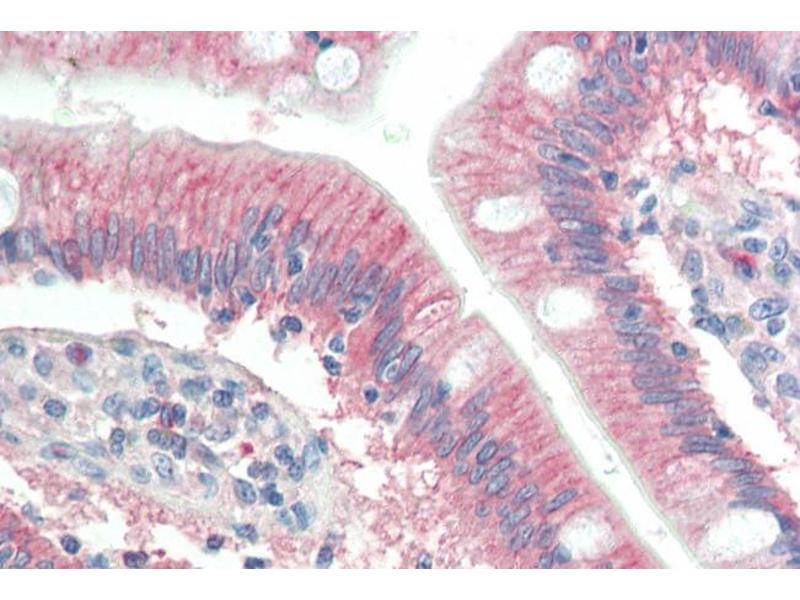 Immunohistochemistry: Paraffin embedded Human Small Intestine. Recommended concentration: 10 μg/mL.